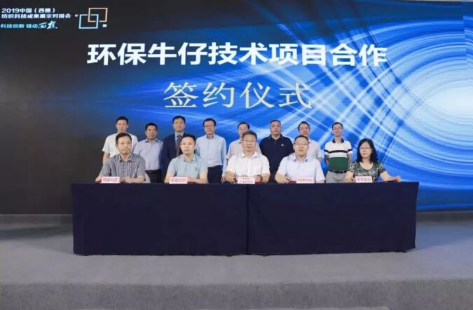 在2019年中國西樵紡織科技成果展示交流會中,中紡學(xué)面料產(chǎn)業(yè)研究院與西樵多家紡織印染企業(yè)及紡織公共服務(wù)平臺進(jìn)行簽約,圍繞“環(huán)保牛仔技術(shù)項(xiàng)目”展開合作。