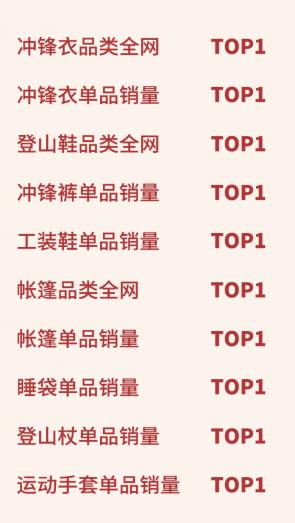如此耀眼的銷量成績,當然離不開成為爆品的優(yōu)秀產品群。今年的雙十一駱駝超級爆款頻出,狂攬?zhí)熵埰脚_10個品類和單品的銷量冠軍。其中,張?zhí)鞇弁铖橊剾_鋒衣包攬全網(wǎng)沖鋒衣單品銷量冠軍和亞軍,駱駝沖鋒褲、駱駝登山鞋、駱駝工裝靴等10個爆品均獲得相應品類銷量冠軍的成績,獨領風騷,盡顯電商行業(yè)的霸主地位。