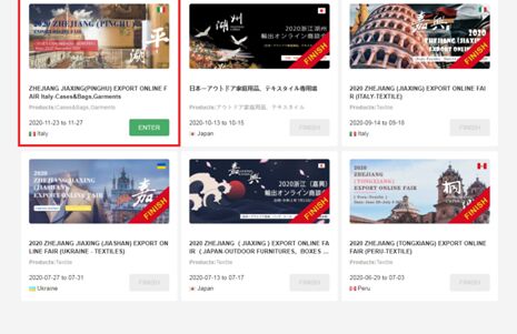 由平湖市人民政府、嘉興市商務(wù)局主辦,平湖市商務(wù)局、嘉興市進(jìn)出口商會、平湖市箱包行業(yè)協(xié)會、平湖市服裝行業(yè)協(xié)會承辦,LIVOLSI&PARTNERS S.p.A協(xié)辦的“2020浙江平湖出口商品網(wǎng)上交易會(意大利站-箱包、服裝專場)”將于意大利時間11月23日火熱啟幕!將借助浙貨云展在線展覽平臺,應(yīng)“云洽談”之勢,結(jié)合數(shù)字科技手段多維度展示平湖品牌形象;促成嘉興平湖箱包,服裝企業(yè)與意大利采購商的交流合作,提振市場信心,拓展外銷渠道。