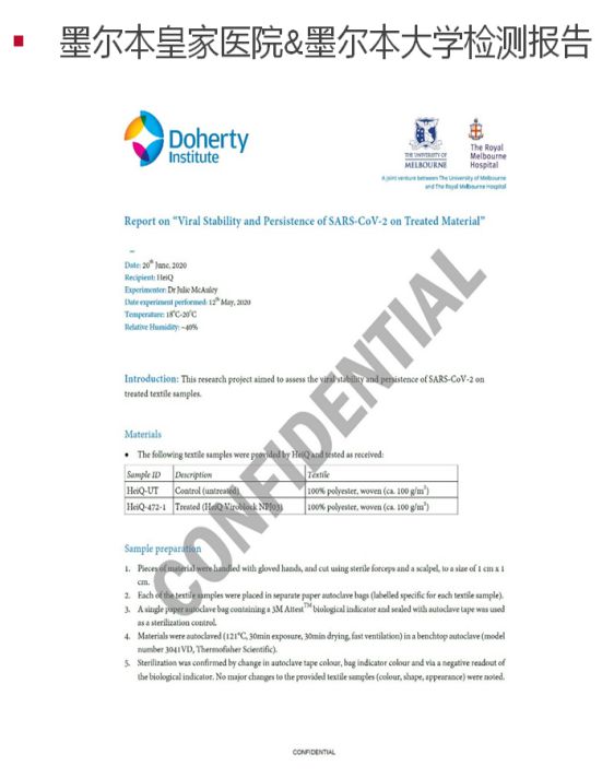 HeiQ是紡織品創(chuàng)新的創(chuàng)新者,致力于創(chuàng)造當(dāng)今市場上一些有效,耐用和高性能的紡織品技術(shù)。為現(xiàn)有服裝,家用紡織品,醫(yī)用紡織品和設(shè)備以及快速消費(fèi)品提供功能,舒適性,衛(wèi)生性和可持續(xù)性。目前HeiQ的技術(shù)已融入服裝,醫(yī)療和家用紡織品市場的許多個世界知名的生活方式品牌中。HeiQ的最新抗病毒紡織品技術(shù)HeiQViroblock可為紡織品等多孔表面提供持久的表面保護(hù)、衛(wèi)生和消毒功效。(更多資訊,可通過關(guān)注HeiQ海屹科-瑞士創(chuàng)新材料微信公眾號了解)