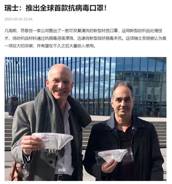 日前,蘇州楚星時尚紡織集團(tuán)股份有限公司即將推出并銷售采用HeiQViroblock的可水洗四層防護(hù)口罩。此款口罩,使用瑞士HEIQ病毒殺滅技術(shù)——HeiQViroblock。