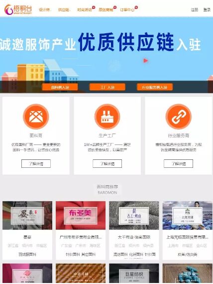 面料企業(yè),生產(chǎn)工廠,服飾行業(yè)服務商注冊發(fā)布產(chǎn)品與服務,供需訂單對接。