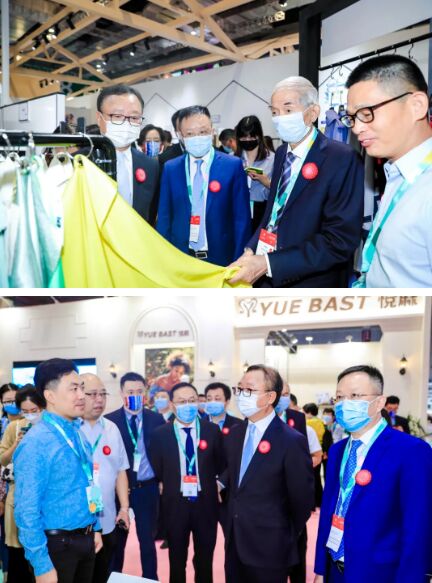 杜鈺洲、陳大鵬以及中國(guó)服裝協(xié)會(huì)常務(wù)副會(huì)長(zhǎng)楊金純、專職副會(huì)長(zhǎng)周一奇等領(lǐng)導(dǎo)和嘉賓一行,走訪了各展區(qū)參展企業(yè),圍繞應(yīng)對(duì)疫情變局、整合供應(yīng)鏈、數(shù)字化變革等行業(yè)焦點(diǎn)展開(kāi)溝通交流。