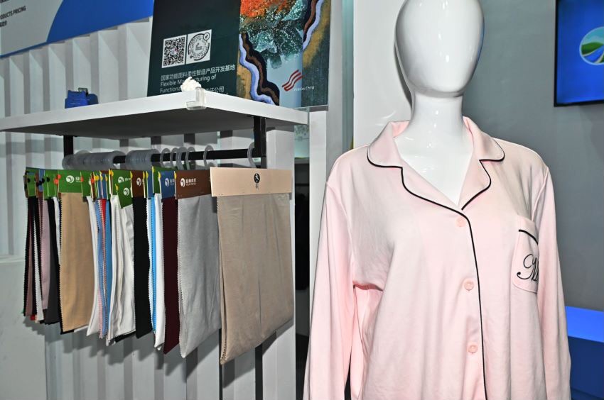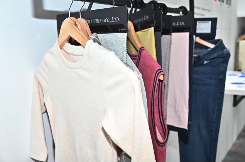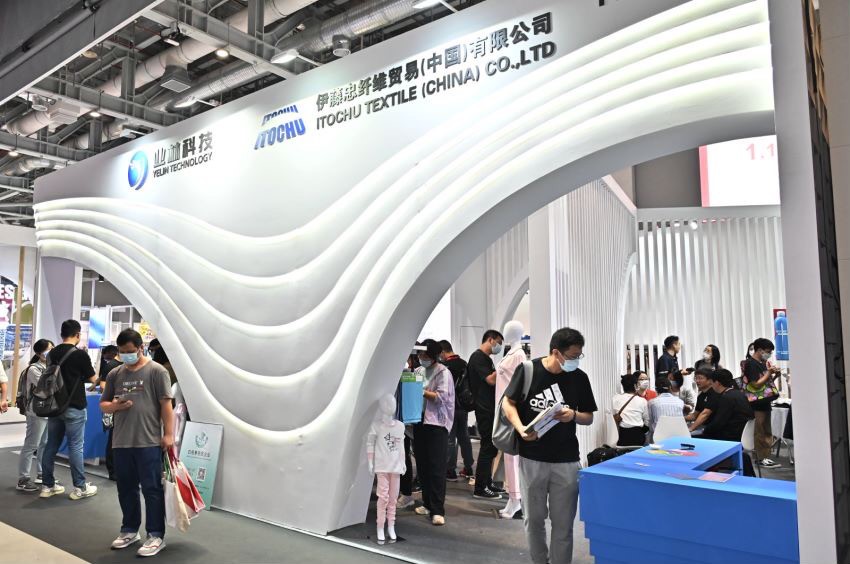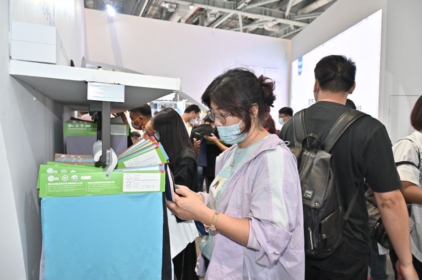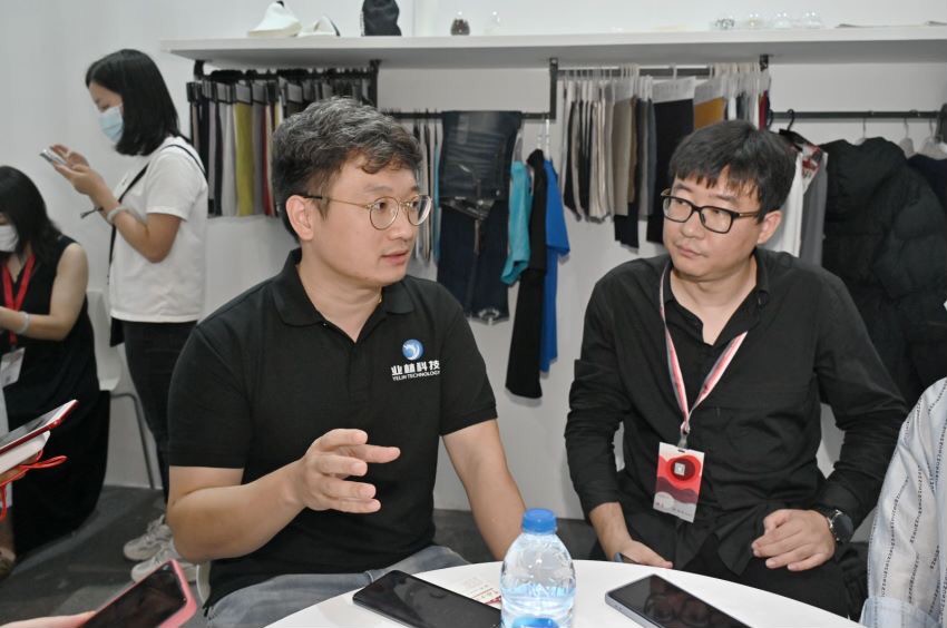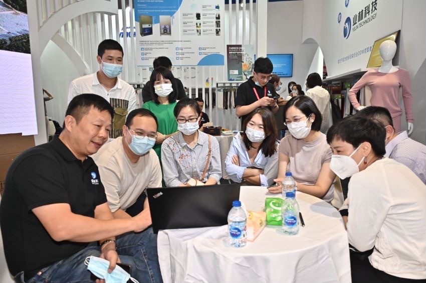 開展首日,業(yè)林紡織科技的展位上客戶就絡(luò)繹不絕,大家紛紛對業(yè)林紡織科技展出的功能性面料和數(shù)據(jù)賦能的新穎模式表現(xiàn)出濃厚的興趣。