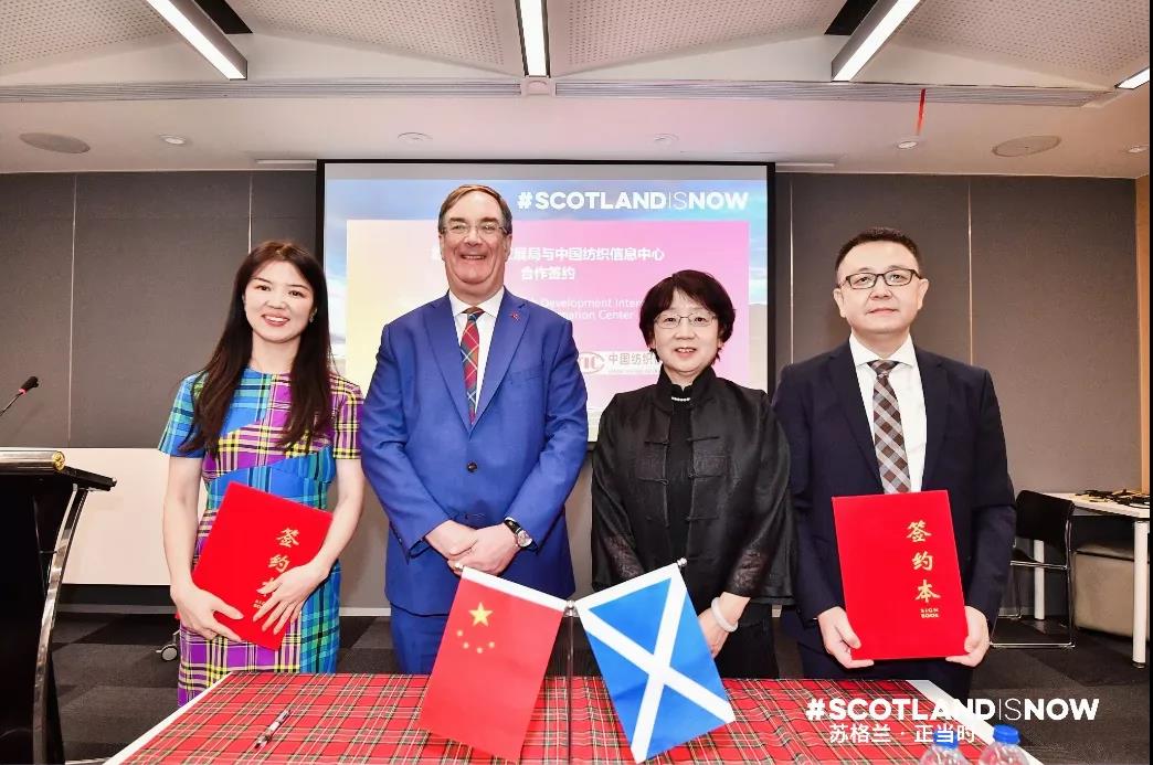 在展會前期,為增進(jìn)中國與蘇格蘭紡織的國際合作,蘇格蘭國際發(fā)展局聯(lián)合中國紡織信息中心共同舉辦了“蘇格蘭紡織臻巧匠心正當(dāng)時暨蘇格蘭助力中國時尚產(chǎn)業(yè)可持續(xù)發(fā)展招待會”。在交流探討“永續(xù)時尚”、“時尚供應(yīng)鏈”等熱題的同時,會議還舉行了“時尚產(chǎn)業(yè)供應(yīng)鏈協(xié)同發(fā)展合作備忘錄”簽約儀式,到場的50余家中國服裝品牌和面料企業(yè)與蘇格蘭紡織企業(yè)共同見證了這一重要時刻。