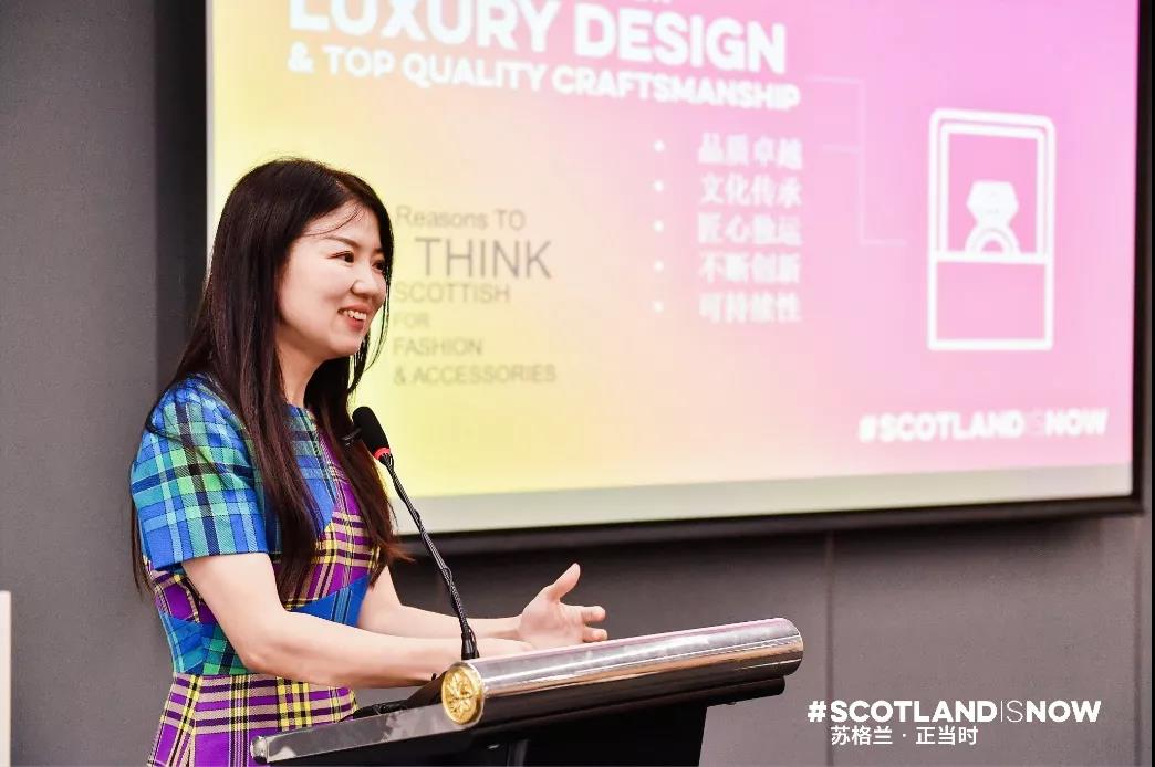 崔月琴圍繞蘇格蘭紡織業(yè)在綠色生產(chǎn)與可持續(xù)發(fā)展方面展開的行動進(jìn)行了分享。她表示,蘇格蘭作為第26屆聯(lián)合國氣象大會的舉辦地,正不斷以政策和產(chǎn)業(yè)管理為抓手,引領(lǐng)全球走向“低碳經(jīng)濟(jì)”。在時尚紡織業(yè)領(lǐng)域,眾多本土品牌通過技術(shù)與生產(chǎn)流程的優(yōu)化和大膽創(chuàng)新,確保每個生產(chǎn)環(huán)節(jié)的綠色與環(huán)保,賦予了蘇格蘭紡織品獨(dú)特的溫度與力量。