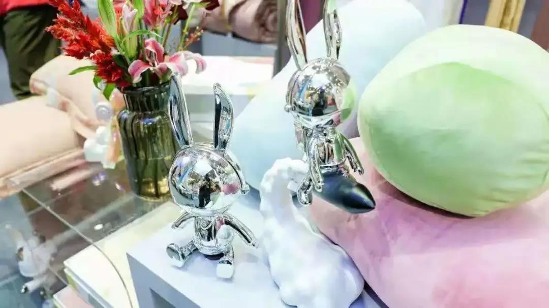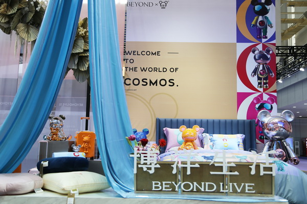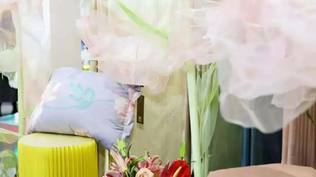 本屆時(shí)尚節(jié),展商們加大服飾、家紡品牌的場(chǎng)景運(yùn)用,讓來訪者身臨其境。比如,在博洋的生活展區(qū),“臥室”的床頭、墻角和梳妝臺(tái)上,擺滿了各式各樣星際熊、艾麗詩兔子卡通造型的布偶、抱枕、盲盒和毛絨玩具,走進(jìn)其間,讓人有一種與童話世界相遇的感覺。