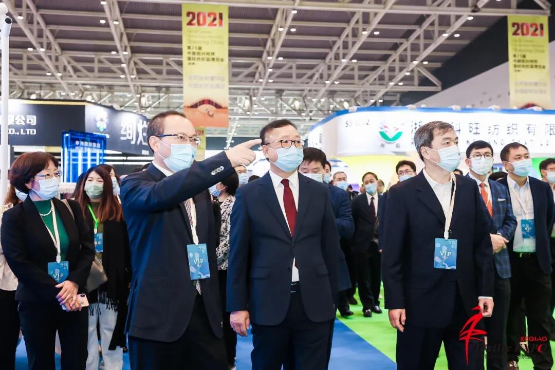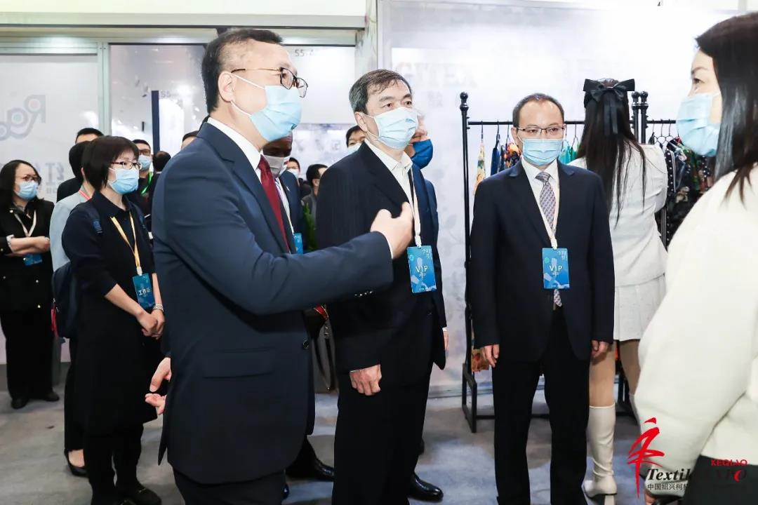 展會首日,工信部總經(jīng)濟師許科敏,國際紡織制造商聯(lián)合會主席、中國紡織工業(yè)聯(lián)合會會長孫瑞哲,工信部消費品工業(yè)司一級巡視員曹學(xué)軍,中國商業(yè)聯(lián)合會副會長傅龍成,中國紡織品進出口商會副會長張錫安,中國紡織工業(yè)聯(lián)合會副會長陳大鵬,塞浦路斯駐華大使公使Antonis Toumazis,多米尼克駐華大使公使H.E. Martin Charles,印度尼西亞駐華大使公使Virdiana Ririen Hapsari,紹興市委常委、組織部部長王琴英,柯橋區(qū)委書記趙如浪,區(qū)委副書記、區(qū)長陳豪,區(qū)人大主任朱曉董,區(qū)政協(xié)主席孟柏干等領(lǐng)導(dǎo)嘉賓參觀展會現(xiàn)場。