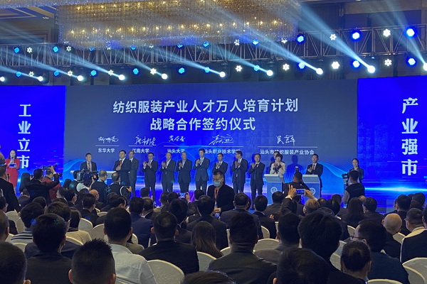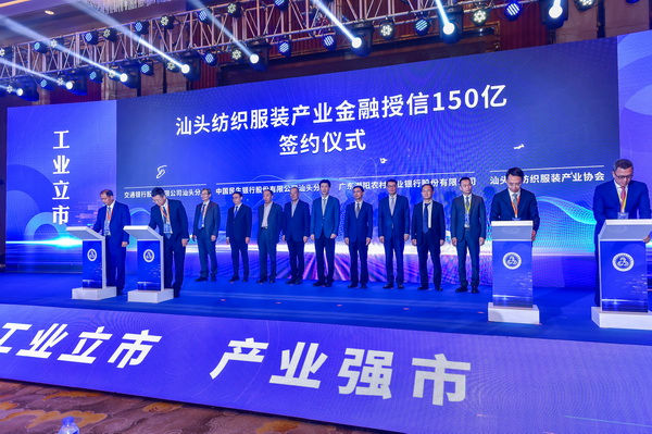 會議現場,同期舉行汕頭紡織服裝產業(yè)協會與金融授權、物流快遞、人才培育、專家智庫等多項簽約儀式。集各行各業(yè)之力,共創(chuàng)汕頭紡織服裝產業(yè)之繁榮。