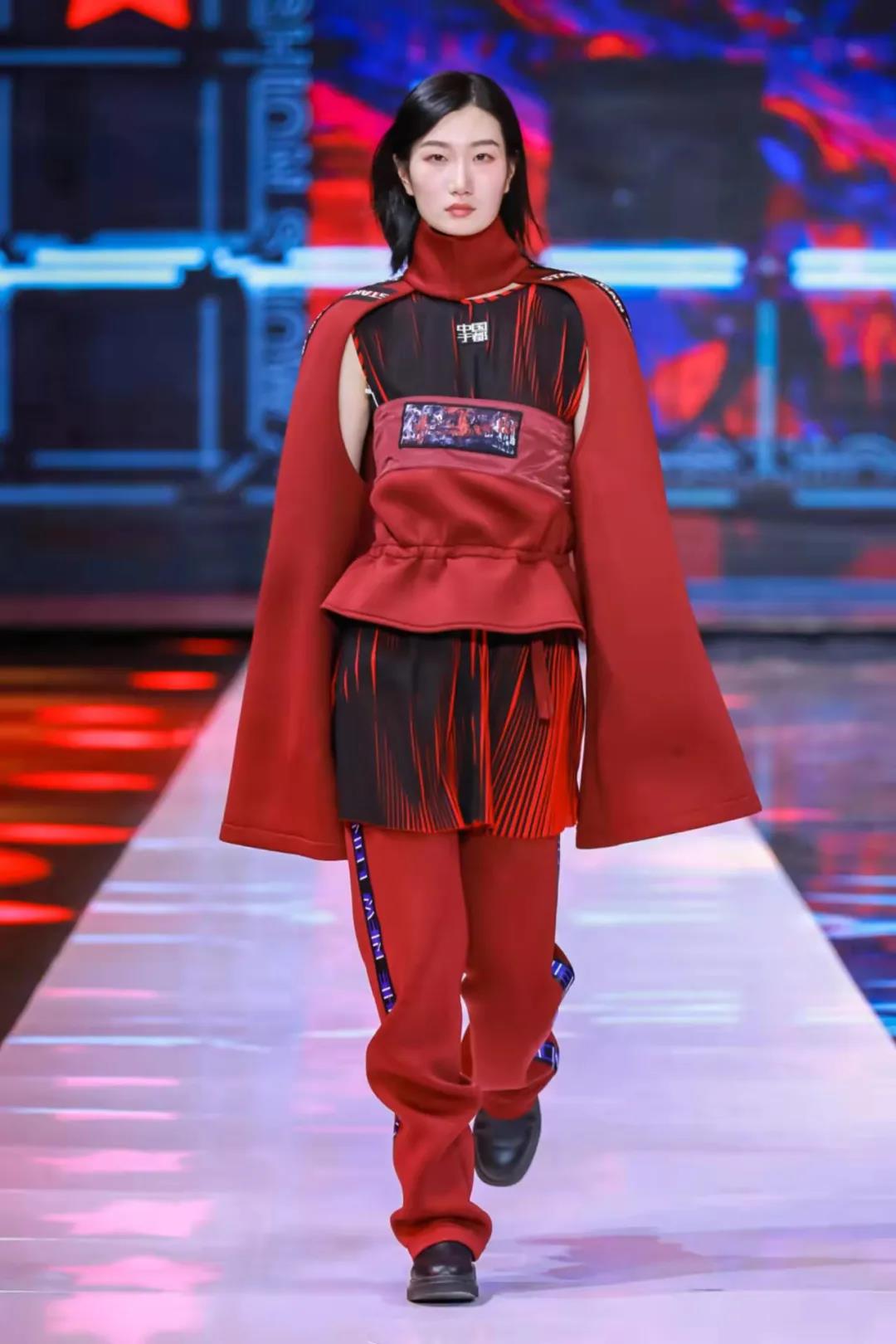 第四系列以紅色調(diào)為主,將“新長(zhǎng)證再出發(fā)”以滾動(dòng)屏幕的風(fēng)格貫穿整個(gè)系列,再結(jié)合圖塊位移的手法,將抽象繪畫作品呈現(xiàn)出意想不到的像素化風(fēng)格,形成極具未來感的動(dòng)態(tài)視覺。再運(yùn)用個(gè)性運(yùn)動(dòng)的版型, 加入具有科技感與光澤感的面料,整體嘗試呈現(xiàn)我們對(duì)數(shù)字化世界未知神秘又強(qiáng)烈向往的心理。