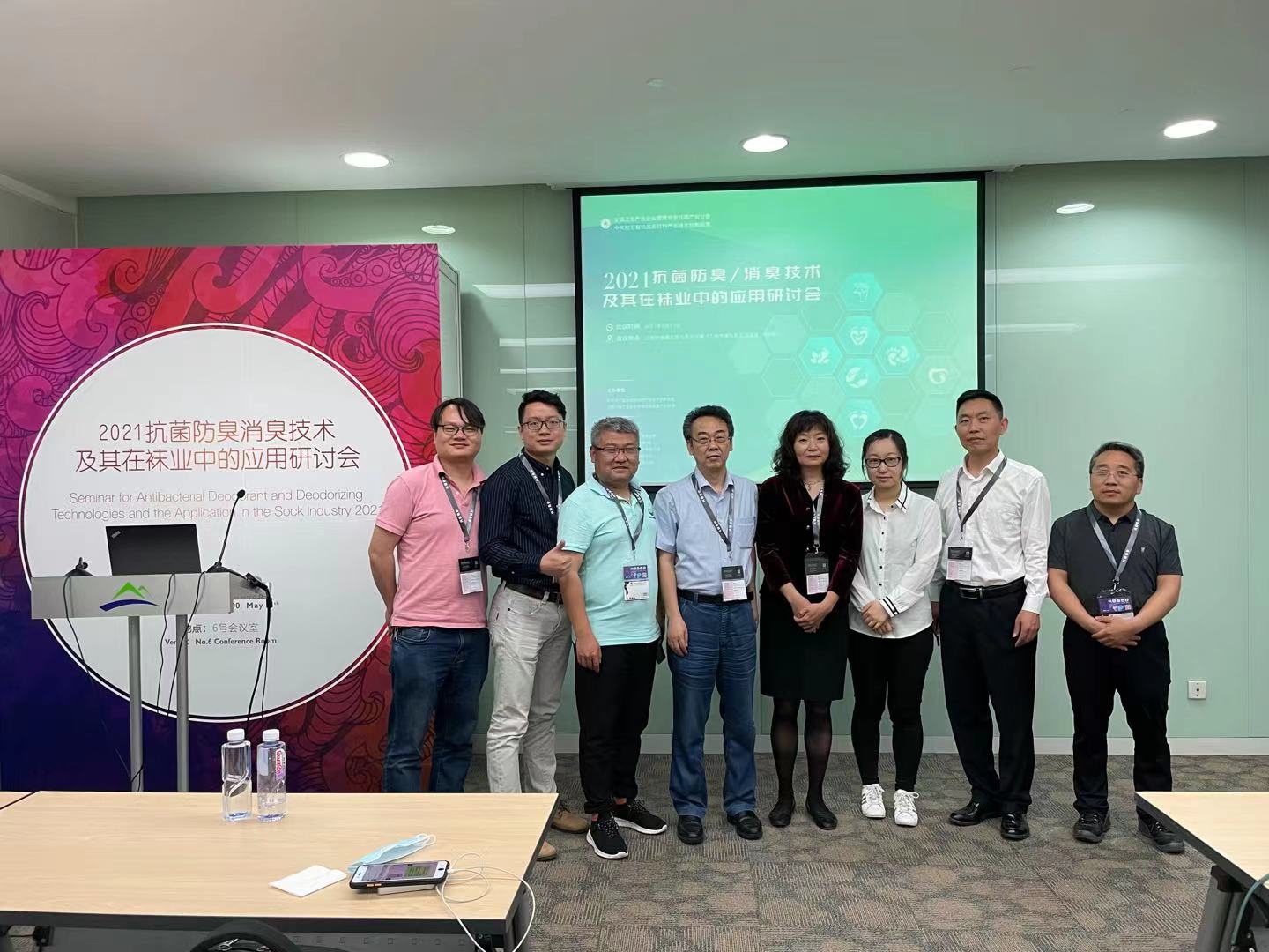 2021年抗菌防臭/消臭技術(shù)及其在襪業(yè)中的應(yīng)用研討會近日在上海召開。本次研討會由中關(guān)村匯智抗菌新材料產(chǎn)業(yè)技術(shù)創(chuàng)新聯(lián)盟(以下簡稱“抗菌產(chǎn)業(yè)聯(lián)盟”)、全國衛(wèi)生產(chǎn)業(yè)企業(yè)管理協(xié)會抗菌產(chǎn)業(yè)分會(以下簡稱“抗菌協(xié)會”)共同主辦,妙抗保國際(亞洲)有限公司、廣東省微生物分析檢測中心、泉州市隱形盾鞋服科技有限公司、上海潤河納米科技有限公司和上海艾歌展覽服務(wù)有限公司共同協(xié)辦。在抗菌產(chǎn)業(yè)聯(lián)盟/抗菌協(xié)會秘書長張迎增先生主持下,來自廣東省微生物研究所、東華大學、通標標準技術(shù)服務(wù)有限公司、妙抗保國際(亞洲)有限公司、上海愛麗紡織技術(shù)檢驗有限公司、泉州隱形盾鞋服科技有限公司等單位的專家,向80余位現(xiàn)場來賓分享了抗菌技術(shù)及其在襪業(yè)中最新應(yīng)用。