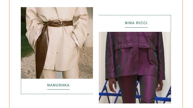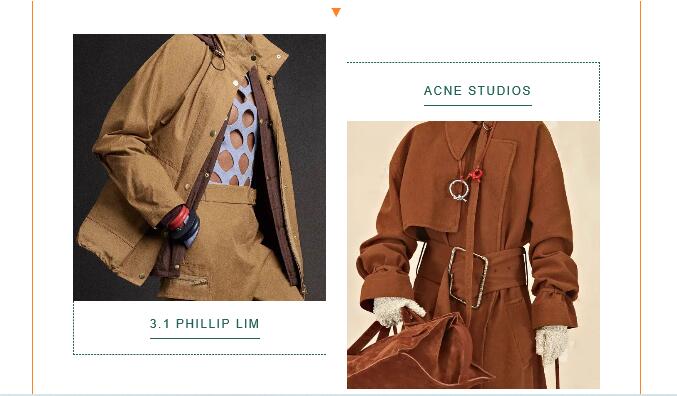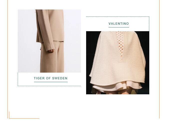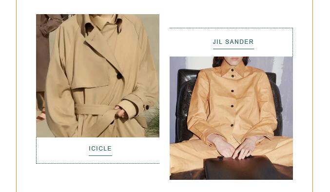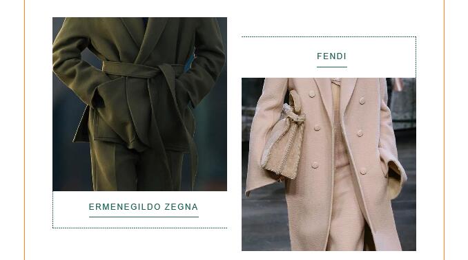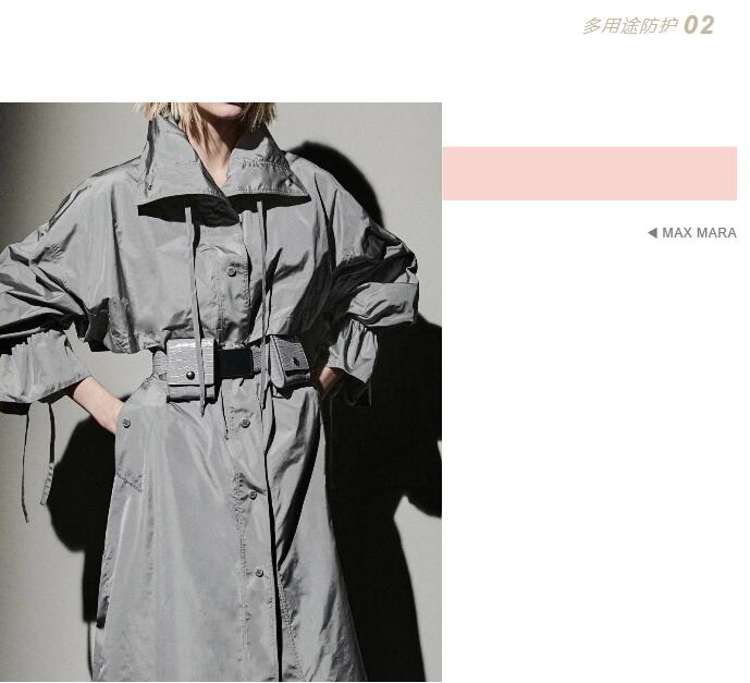 將專業(yè)的防護性能融入日常著裝設(shè)計,結(jié)合都市風格與戶外審美為日常服裝增值成為本季新的創(chuàng)新途徑。棉質(zhì)面料以棉/滌、棉/錦等材質(zhì)為主,啞光光潔表面展現(xiàn)精致化外觀,紙感涂層、微皺表面、壓褶紋理表達對精致自然的追求;滌綸或尼龍面料如塔夫綢等結(jié)構(gòu)致密、光澤閃亮,防護性涂層賦予其防風防水、耐久耐穿等性能,用于打造都市造型的風衣、夾克套裝等,實現(xiàn)時裝與戶外功能性的融合,如Max Mara、Hermès;高性能羊毛成為開發(fā)熱點,如ICICLE通過使用OptimTM專利技術(shù)超細羊毛開發(fā)高支高密純毛面料,在保持產(chǎn)品高端質(zhì)感的同時,賦予其防風防水、抗皺、透氣、控溫等功能性,真正實現(xiàn)辦公、休閑、戶外的一衣多用性。