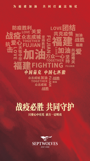 福建疫情牽動(dòng)著以七匹狼為代表的福建民企和各地商會(huì)的心,而他們一系列的慈善舉動(dòng)也激揚(yáng)和迸發(fā)出閩商的無(wú)疆大愛(ài),展現(xiàn)了以七匹狼為代表的民族品牌永不磨滅的家國(guó)情懷。七匹狼將同億萬(wàn)華夏兒女一起,馳援抗疫,共克時(shí)艱!正如七匹狼董事長(zhǎng)周少雄的抗疫宣言那樣,“只要心中有光,前方一定明亮,期待回歸平安,再現(xiàn)繁榮,疫散花開(kāi)!”