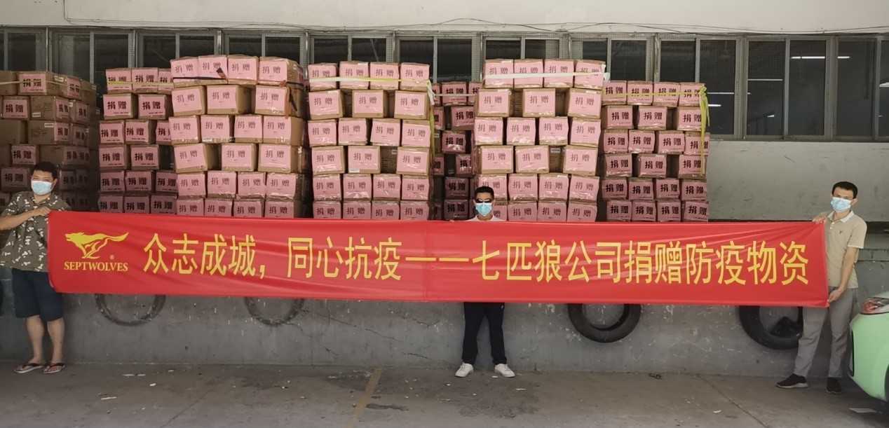 作為一家具有社會(huì)責(zé)任的上市企業(yè),七匹狼又一次以實(shí)際行動(dòng)詮釋民族品牌的責(zé)任擔(dān)當(dāng)。作為閩商代表的七匹狼董事長(zhǎng)周少雄垂先率范,果斷發(fā)聲,他表示:“七匹狼將繼續(xù)關(guān)注疫情,協(xié)同社會(huì)共同抗疫,永不放棄,守護(hù)好每一位員工,我們相信福建疫情終將過(guò)去,我們有信心也有決心,也將和所有的狼族伙伴、和前線(xiàn)的醫(yī)護(hù)人員們一同共克時(shí)艱?!逼咂ダ屈h委書(shū)記吳興群也第一時(shí)間作出工作部署,及時(shí)組織防疫物資生產(chǎn)及供應(yīng)配送。2021年9月21日,七匹狼向廈門(mén)市翔安區(qū)、晉江市金井鎮(zhèn)政府、公安干警、防控辦、醫(yī)護(hù)人員捐贈(zèng)醫(yī)用一次性防護(hù)服、隔離衣、一次性使用醫(yī)用口罩、醫(yī)用外科口罩、N95防護(hù)口罩等防疫必需用品,將點(diǎn)滴溫暖匯成大愛(ài)江河,為抗疫精神寫(xiě)下了最生動(dòng)的注腳。