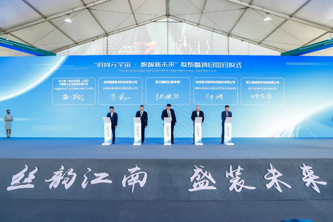本次開幕式上還舉行了一系列儀式活動,包括東方杯·2023中國女裝設(shè)計大賽啟動儀式、《蘇州市吳江區(qū)紡織行業(yè)雙碳目標(biāo)氣候創(chuàng)新行動白皮書》發(fā)布儀式、盛澤與中國紡織工業(yè)聯(lián)合會共同設(shè)立中國紡織服裝行業(yè)首批“可持續(xù)創(chuàng)新辦公室”授牌儀式、“時尚元宇宙·數(shù)智新未來”發(fā)布暨項目簽約儀式、2023盛澤時尚周發(fā)布儀式等。