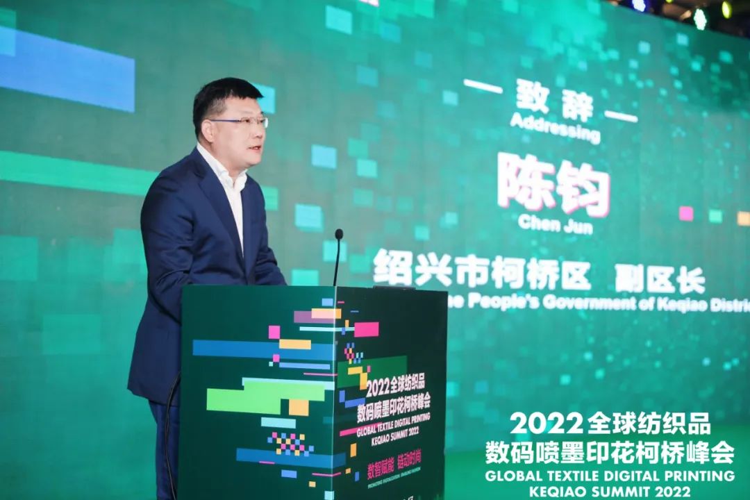 紹興市柯橋區(qū)副區(qū)長陳鈞致辭時表示,近年來,柯橋區(qū)緊緊圍繞高質(zhì)量發(fā)展要求,以打造世界級紡織產(chǎn)業(yè)集群為目標(biāo),大力推動生產(chǎn)方式變革與時尚創(chuàng)意發(fā)展,逐步發(fā)展成為中國千億級首批國家新型工業(yè)化紡織印染產(chǎn)業(yè)示范基地和中國綠色印染研發(fā)生產(chǎn)基地。數(shù)碼噴墨印花是印染行業(yè)的一個細分領(lǐng)域,集綠色制造、柔性制造和智能制造于一體,是印染行業(yè)向創(chuàng)新發(fā)展、綠色發(fā)展、智能發(fā)展模式轉(zhuǎn)型的代表性技術(shù),具備廣闊的發(fā)展前景。