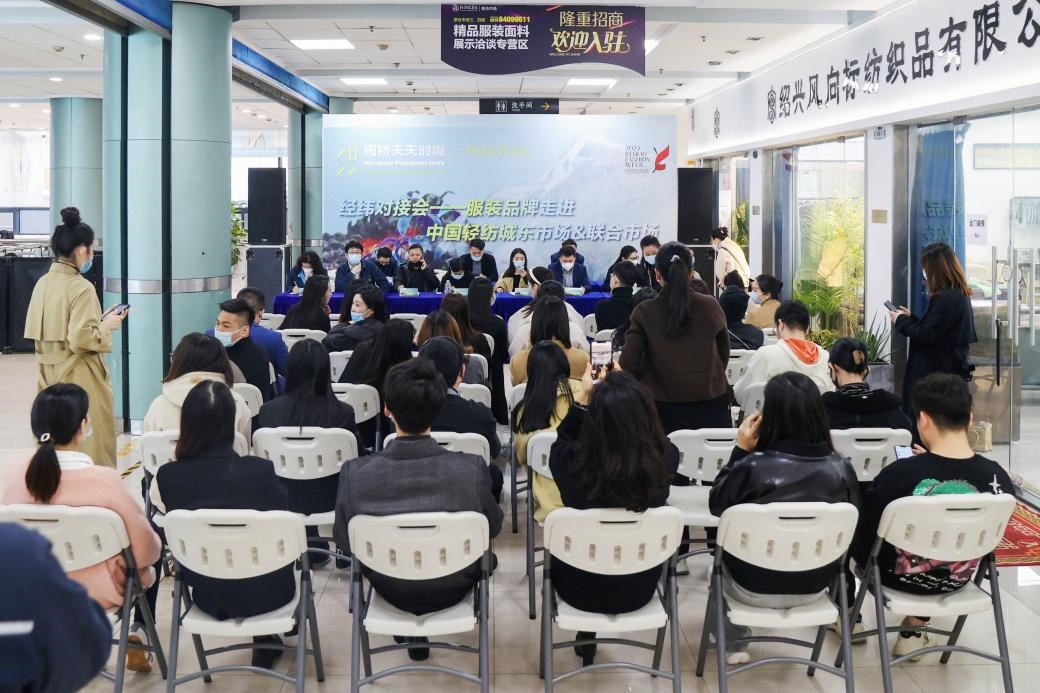 11月17日,2022柯橋時(shí)尚周(秋季)期間,“柯橋天天時(shí)尚——時(shí)尚交流活動(dòng)”的專項(xiàng)活動(dòng)之一——“經(jīng)緯對接會(huì)——服裝品牌走進(jìn)中國輕紡城東市場&聯(lián)合市場”在中國輕紡城聯(lián)合市場圓滿舉行。來自中國輕紡城東市場、聯(lián)合市場的采光紡織、創(chuàng)為紡織、飛越紡織等30家入駐商戶與三六一度(中國)有限公司、廈門喬丹科技有限公司、無錫紅豆居家服飾有限公司等15家知名服裝品牌代表參加了此次活動(dòng)。