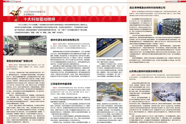 其中,浙江本意紡織科技有限公司榜上有名,榮獲2022中國紡織服裝行業(yè)年度精銳榜—“十大科技驅(qū)動榜樣”。