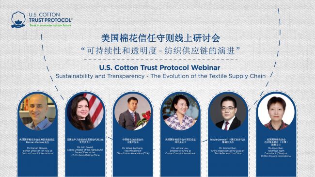 美國(guó)國(guó)際棉花協(xié)會(huì)首次在中國(guó)舉辦美國(guó)棉花信任守則(U.S. Cotton Trust Protocol®)線上研討會(huì),向紡織供應(yīng)鏈的企業(yè)和品牌以及合作伙伴詳細(xì)講解美國(guó)棉花信任守則和信任守則消費(fèi)管理解決方案。