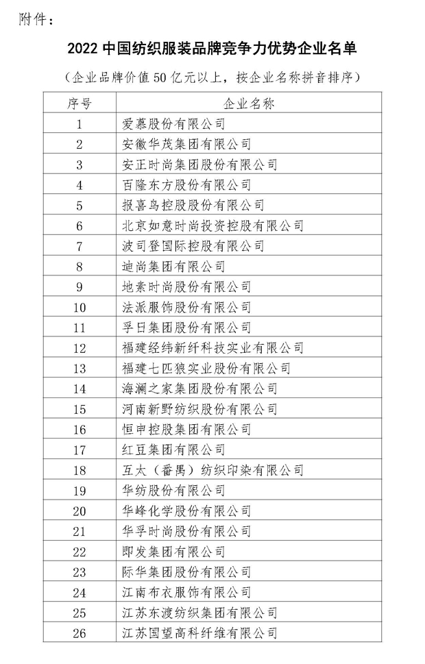 關(guān)于發(fā)布2022中國(guó)紡織服裝品牌競(jìng)爭(zhēng)力評(píng)價(jià)結(jié)果的決定