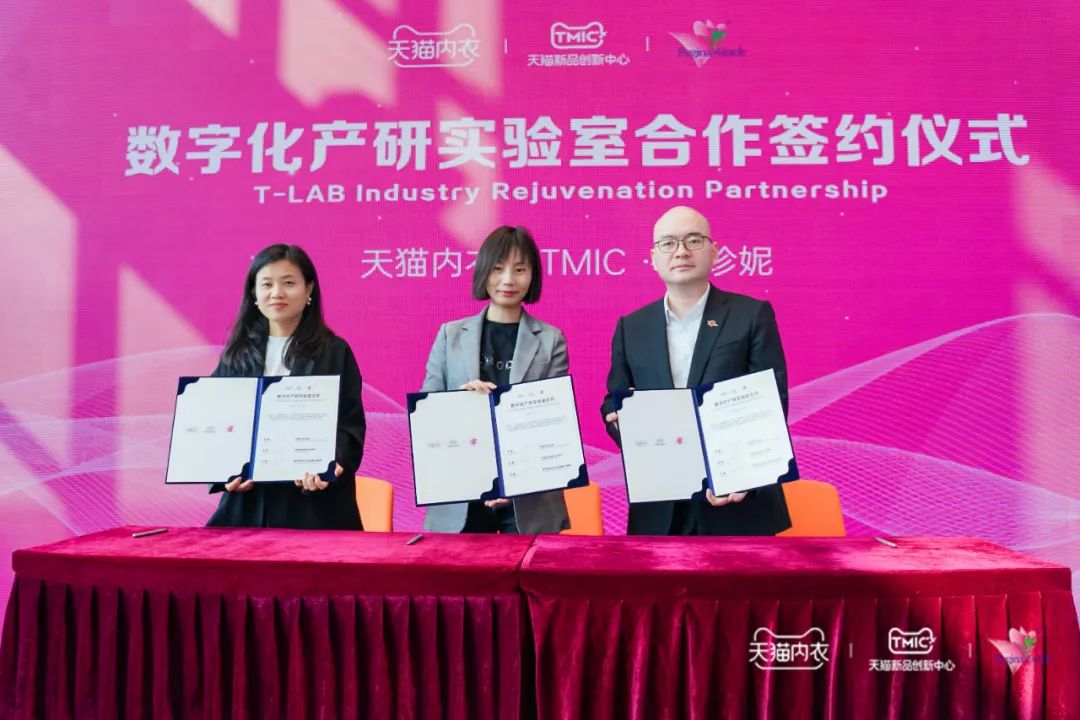 5月20日,天貓與維珍妮成立T-LAB數(shù)字化產(chǎn)研實驗室,進(jìn)軍C2B創(chuàng)新模式。深圳市內(nèi)衣行業(yè)協(xié)會、深圳市心衣創(chuàng)新研發(fā)中心受邀出席此次活動。