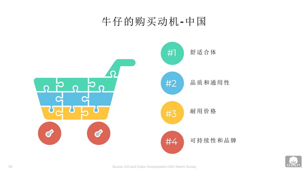 “舒適度和合身度是中國消費(fèi)者購買牛仔褲最大的動機(jī),其次是質(zhì)量與多功能性?!睆埩⒕V表示,超過三分之二的中國消費(fèi)者在購買牛仔褲時認(rèn)為合身非常重要。當(dāng)找到適合的款式時,超過五分之四的人愿意為牛仔褲支付更多費(fèi)用。