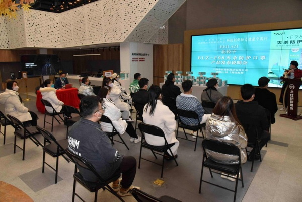 元月16日,上海申羽紡織集團有限公司BLZ-F98滅殺防護口罩產(chǎn)品發(fā)布說明會,在上海北虹橋新媒體產(chǎn)業(yè)中心舉行。