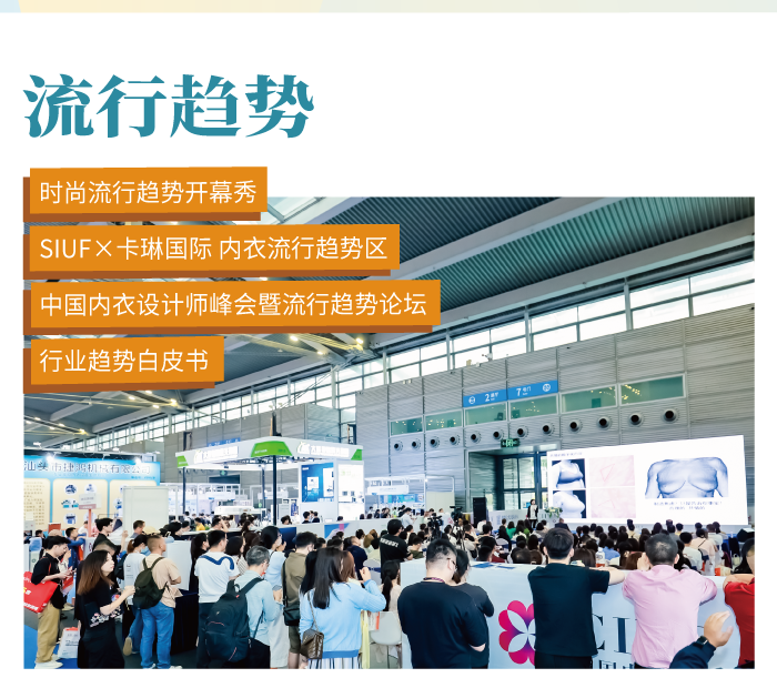 集合潮流新品及趨勢概念,傳達創(chuàng)新設(shè)計感悟,通過秀場、展區(qū)及論壇活動,直觀展示內(nèi)衣穿搭新趨勢,內(nèi)衣單品設(shè)計要點,未來趨勢面輔料產(chǎn)品,為內(nèi)衣行業(yè)震撼呈現(xiàn)一場融合中國設(shè)計精神和全球內(nèi)衣潮流的感官盛會。