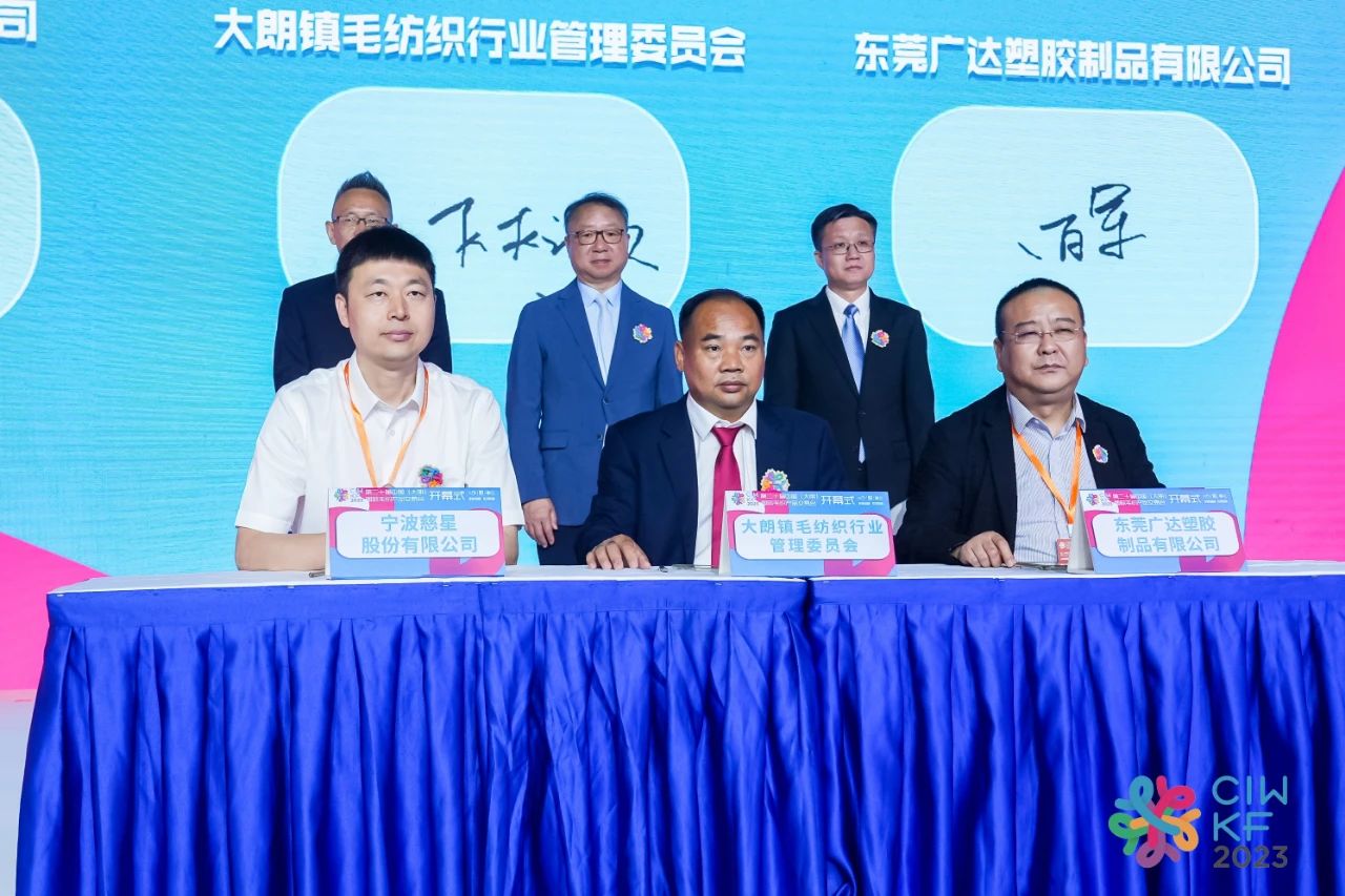 大朗鎮(zhèn)以“織交會”為媒,引導(dǎo)傳統(tǒng)毛織產(chǎn)業(yè)向新型工業(yè)化邁進,不斷提升產(chǎn)業(yè)競爭力和影響力,為大朗經(jīng)濟社會發(fā)展注入新的活力。東莞廣達塑膠制品有限公司、大朗鎮(zhèn)毛紡織行業(yè)管理委員會、寧波慈星股份有限公司三方簽署《智慧毛織企業(yè)投資合作框架協(xié)議》。