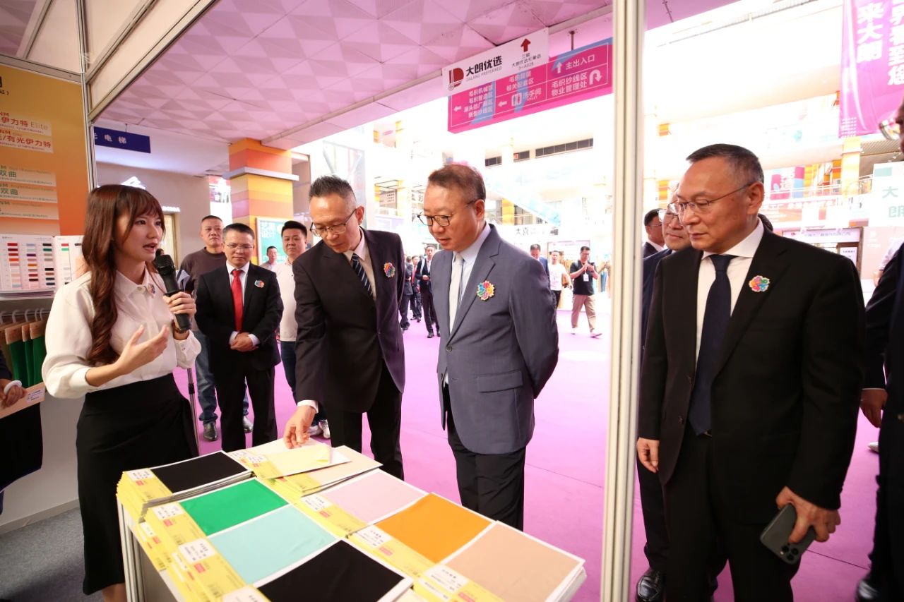 國際紡織制造商聯(lián)合會主席、中國紡織工業(yè)聯(lián)合會會長孫瑞哲,中國紡織工業(yè)聯(lián)合會秘書長夏令敏,中國紡織工業(yè)聯(lián)合會副會長徐迎新,中國毛紡織行業(yè)協(xié)會會長劉家強,中國針織工業(yè)協(xié)會會長林云峰,東莞市委常委、副市長邢文聚,貴州建投集團黨委書記、董事長鐘汰甬,大朗鎮(zhèn)黨委書記郭懷晉,樂昌市委副書記、市長劉華益,大朗鎮(zhèn)黨委副書記、鎮(zhèn)長鄧柏松,東莞市毛紡織行業(yè)協(xié)會會長周淦華以及本屆織交會主辦、承辦、協(xié)辦和支持單位的代表,市鎮(zhèn)相關(guān)領(lǐng)導(dǎo),各地紡織、服裝協(xié)會的領(lǐng)導(dǎo)、專家,英國、法國、德國、俄羅斯等多個國家(地區(qū))的采購商和國內(nèi)服裝品牌公司負責(zé)人、代理商參加今天的開幕儀式。