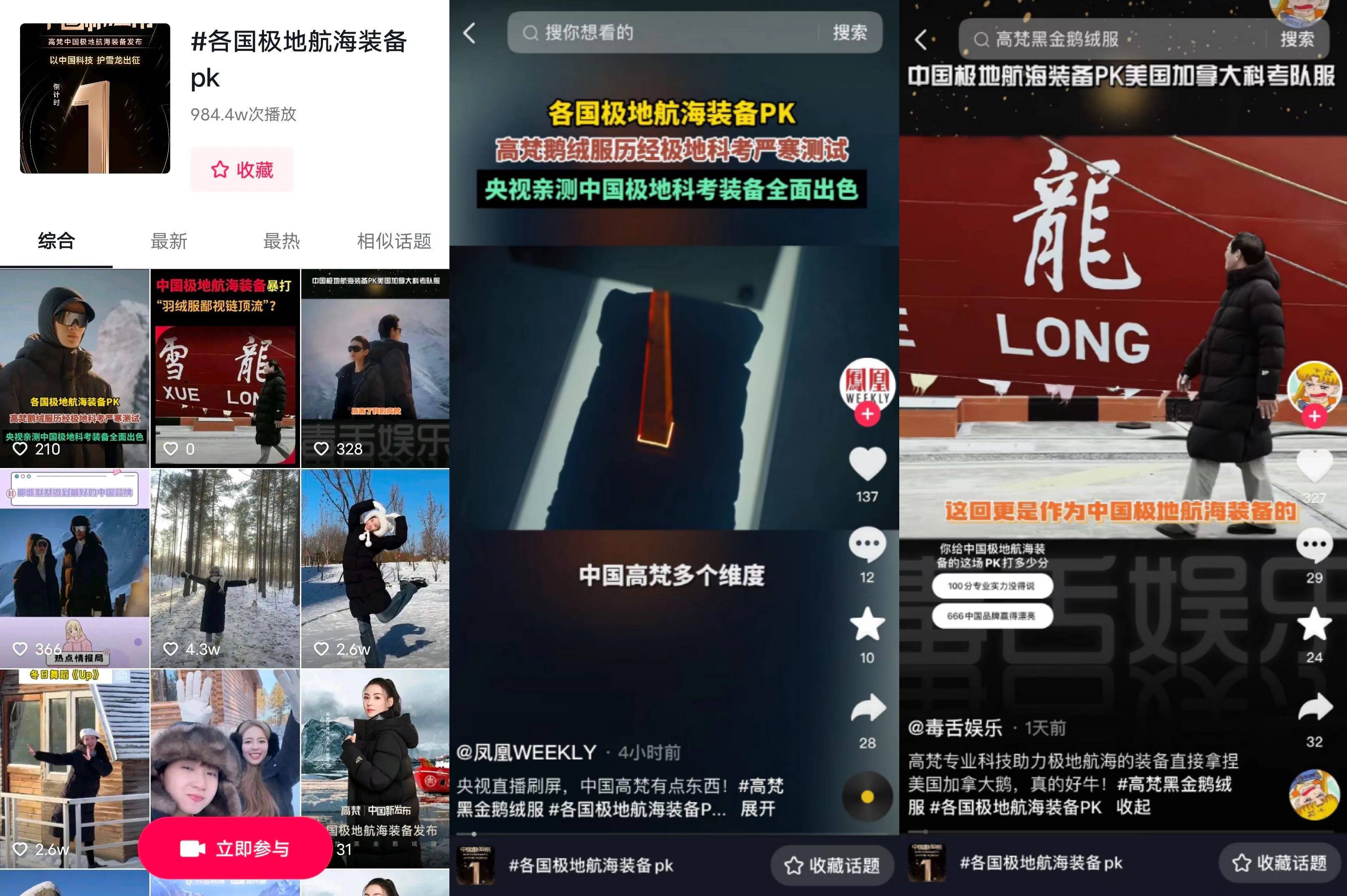 其次,為了進(jìn)一步發(fā)酵新品直播發(fā)布會,同期發(fā)起#各國極地航海裝備PK 話題,多維度解讀央視網(wǎng)測試片段,不斷強(qiáng)化用戶對品牌與產(chǎn)品的感知。同時還在視頻中發(fā)起互動投票選項,深度激發(fā)消費(fèi)者參與熱情。