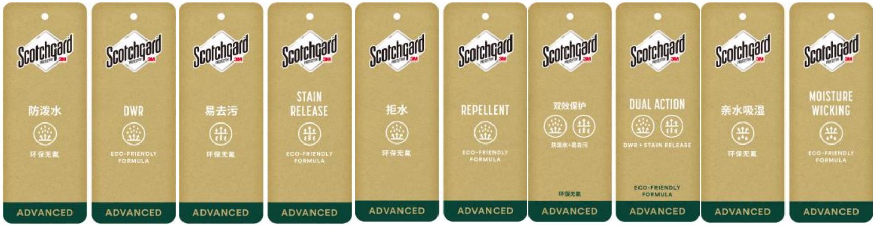 針對戶外雨雪天氣,3M推出了思高潔雙效保護(hù)技術(shù),雙效保護(hù)就像在織物表面形成了一層強(qiáng)大的防護(hù)膜,有效抵御水性污漬和雨雪侵襲。不僅保有紡織品的柔軟、透氣性能,并能使油性污漬在普通水洗條件下更易去除。非氟技術(shù),防水同時(shí)更易清洗,是3M思高潔最具特色的功能方案。