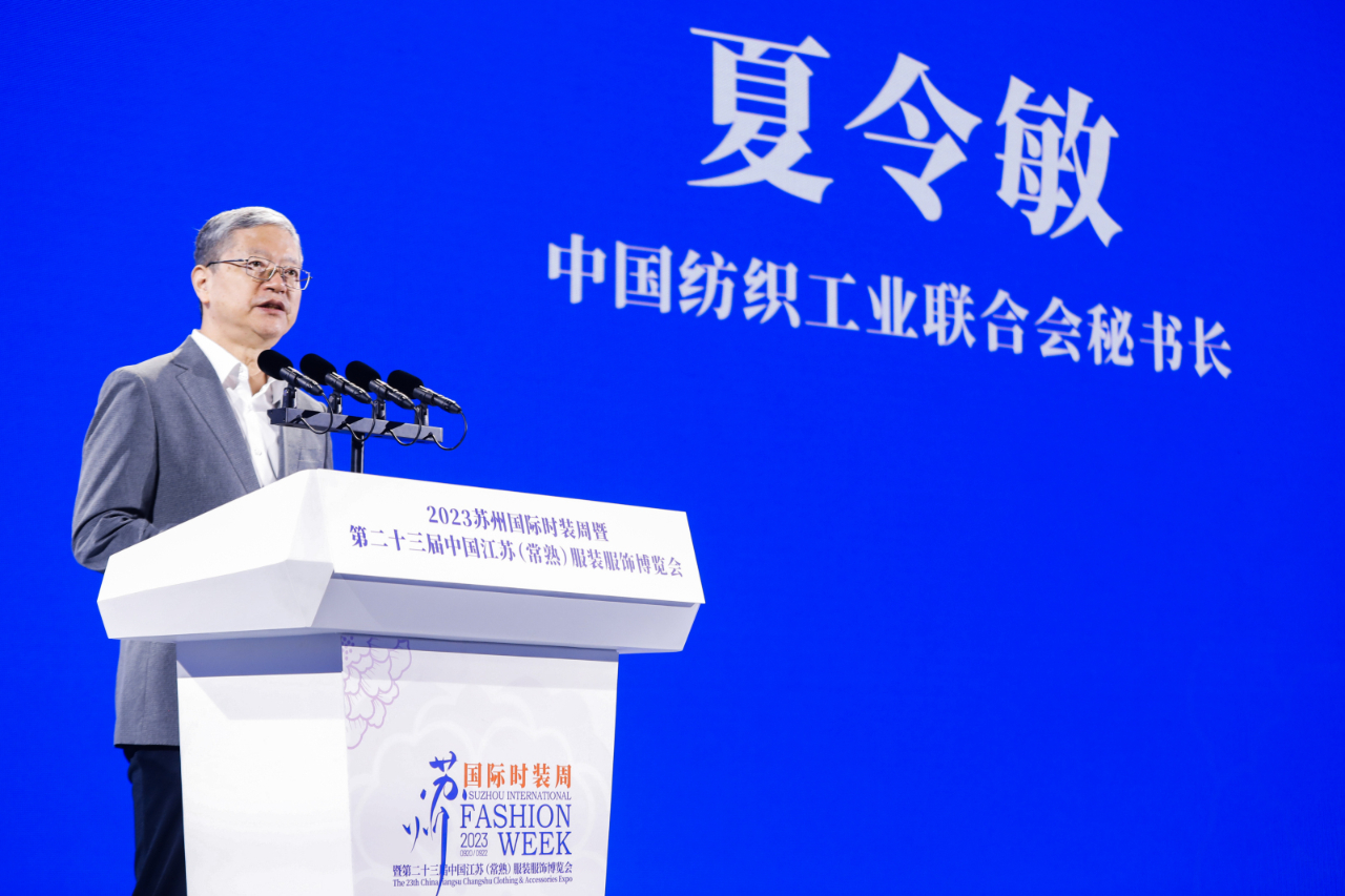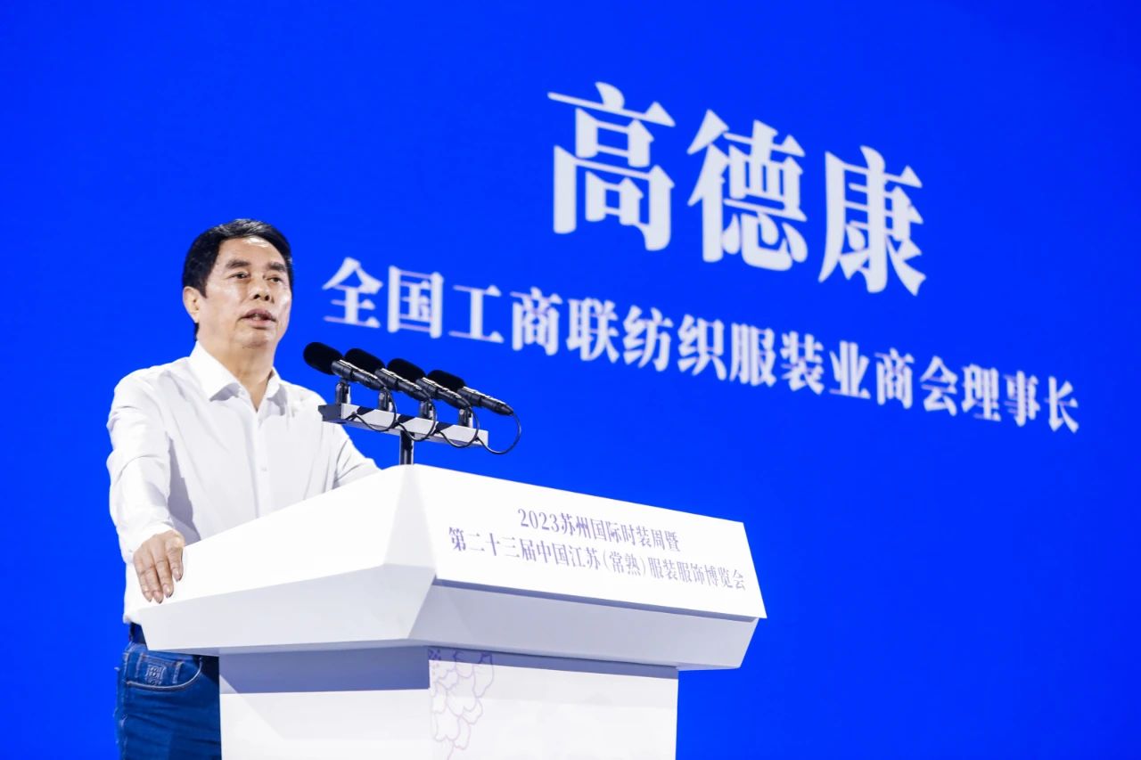 全國(guó)工商聯(lián)紡織服裝業(yè)商會(huì)理事長(zhǎng)高德康在致辭中提到, 2023蘇州國(guó)際時(shí)裝周暨第二十三屆中國(guó)江蘇(常熟)服裝服飾博覽會(huì)的舉行,打造了行業(yè)資源匯聚、協(xié)同創(chuàng)新、融合發(fā)展的平臺(tái),并以更加寬廣的眼光、更加開(kāi)放的姿態(tài)、更加務(wù)實(shí)的舉措,讓本土紡織服裝品牌企業(yè)走出常熟、走出蘇州、走向世界。面向未來(lái),他期待紡織服裝同仁攜手以共、相向而行,深入貫徹新發(fā)展理念,主動(dòng)融入新發(fā)展格局,大力弘揚(yáng)企業(yè)家精神,創(chuàng)造新引擎、發(fā)揮新動(dòng)能、建立新賽道、匯聚新優(yōu)勢(shì),推動(dòng)產(chǎn)業(yè)高質(zhì)量發(fā)展再上新臺(tái)階,為形成一批知名跨國(guó)企業(yè)集團(tuán)和有國(guó)際影響力的紡織服裝品牌,加快邁向全球價(jià)值鏈中高端而砥礪奮斗。
