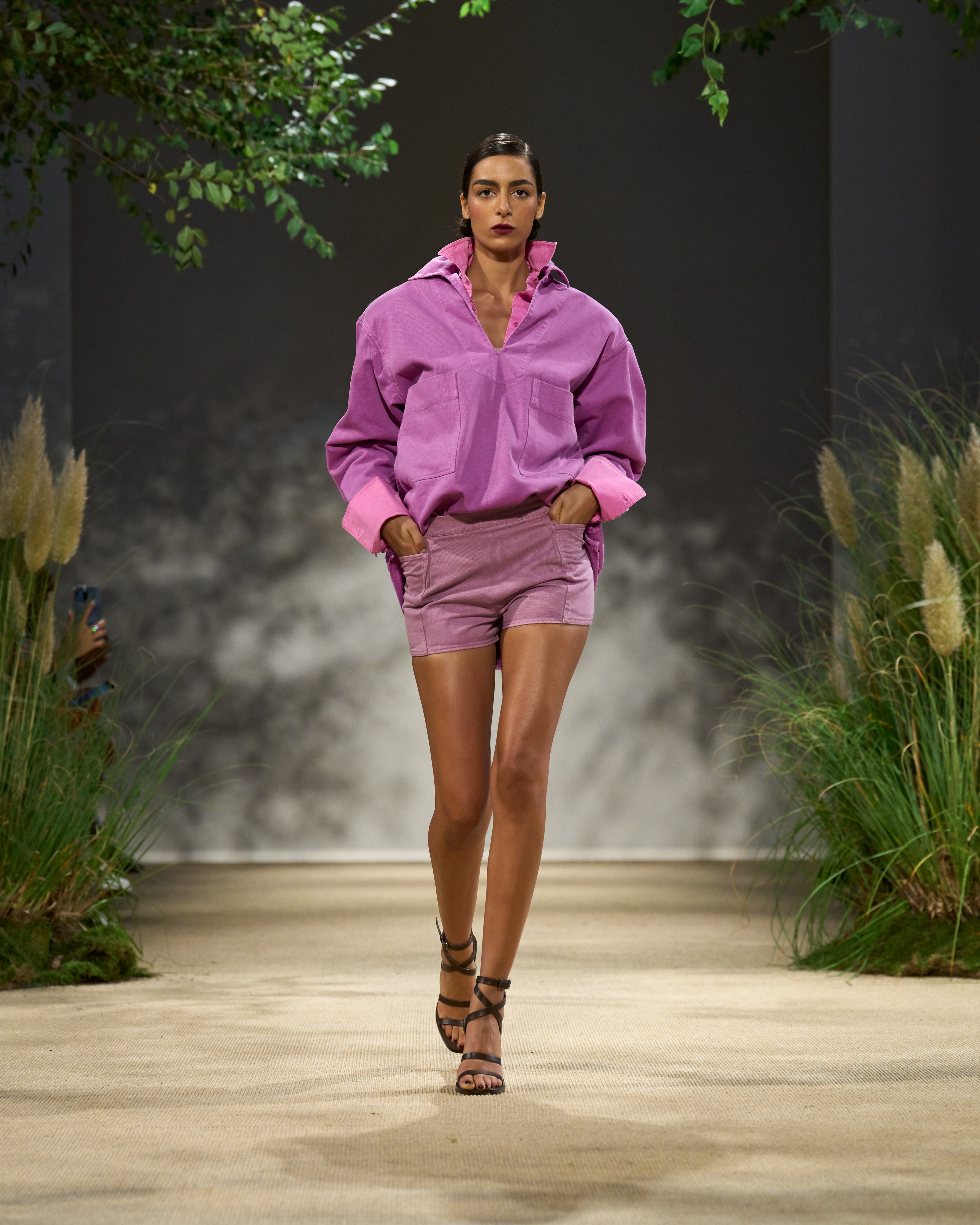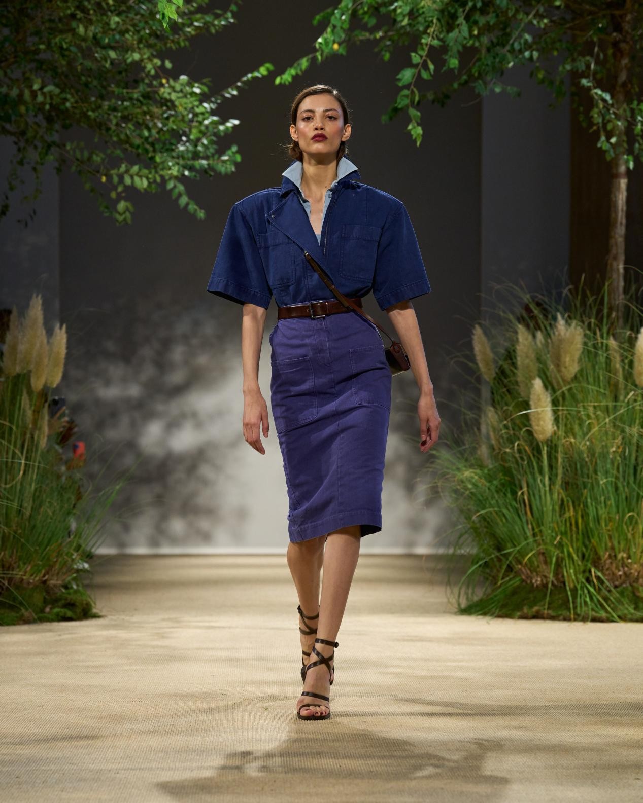 Max Mara 2024 春夏系列,以當(dāng)代都市視角詮釋田園元素,以英國(guó)女子地面防衛(wèi)軍為靈感,將女孩們的馬褲、連體衣以及經(jīng)典工裝化作迷人質(zhì)樸的實(shí)用細(xì)節(jié)。獨(dú)具個(gè)性的斜紋棉布著染斑斕色彩,恰似仲夏時(shí)節(jié)鄉(xiāng)村花園中爭(zhēng)奇斗艷的香豌豆花。
