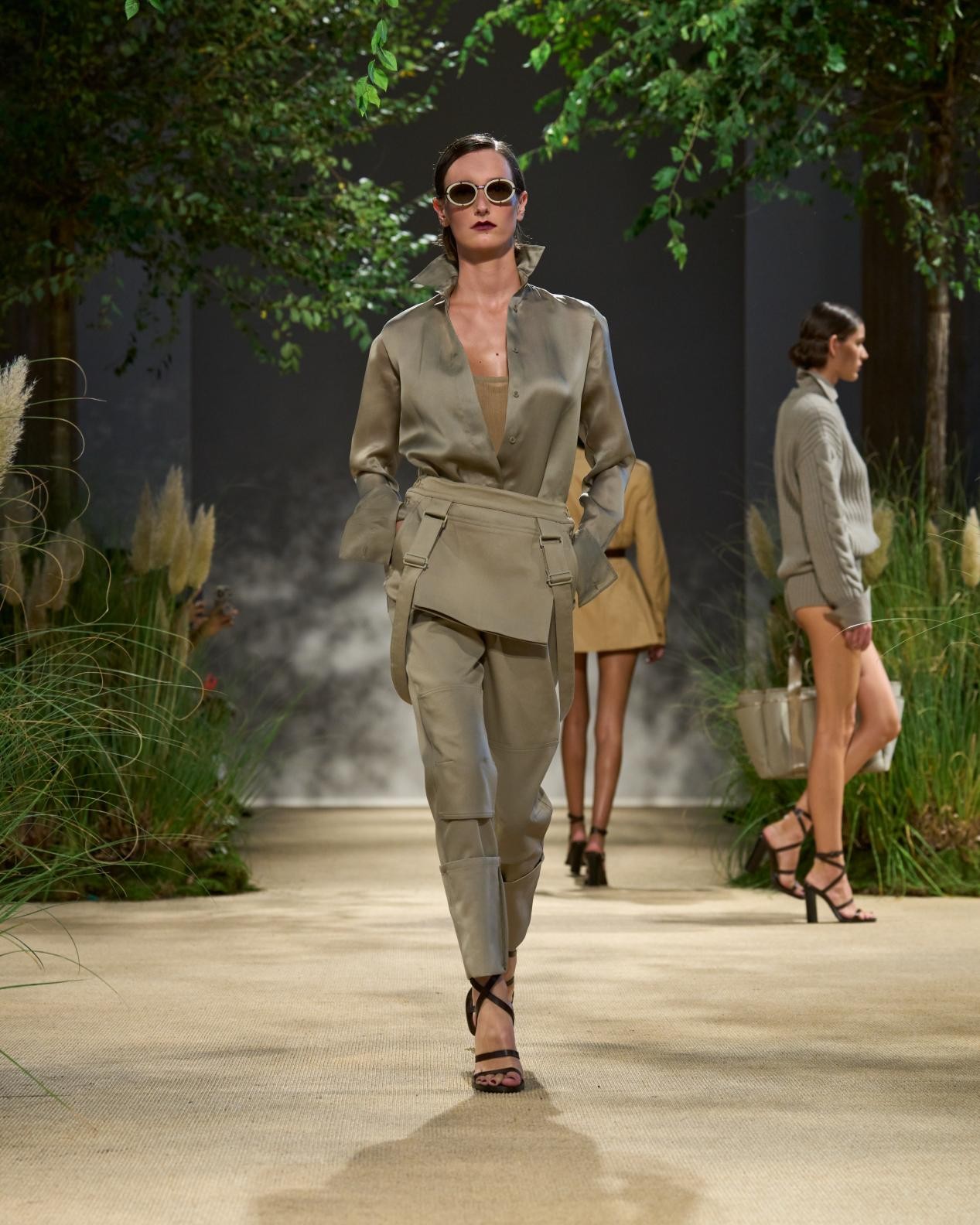 設(shè)計(jì)精良的風(fēng)衣、瀟灑的軍旅風(fēng)夾克以及連身褲則以中性沙色呈現(xiàn),平添一絲低調(diào)奢華氣質(zhì)。