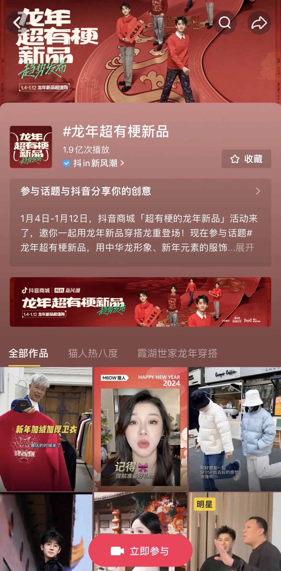 近期抖音電商大服飾行業(yè)活動(dòng)抖in新風(fēng)潮,在龍年到來之際攜手明星達(dá)人和頭部品牌,發(fā)起「龍年超有梗新品趨勢(shì)發(fā)布」活動(dòng),構(gòu)建營(yíng)銷新場(chǎng)景,為眾人帶來有關(guān)龍年穿搭、龍年單品的分享,對(duì)于消費(fèi)者龍年穿搭造型的借鑒、以及龍年穿搭單品的選擇有著極高的參考價(jià)值,推動(dòng)著潮流趨勢(shì)與參與品牌的發(fā)展。