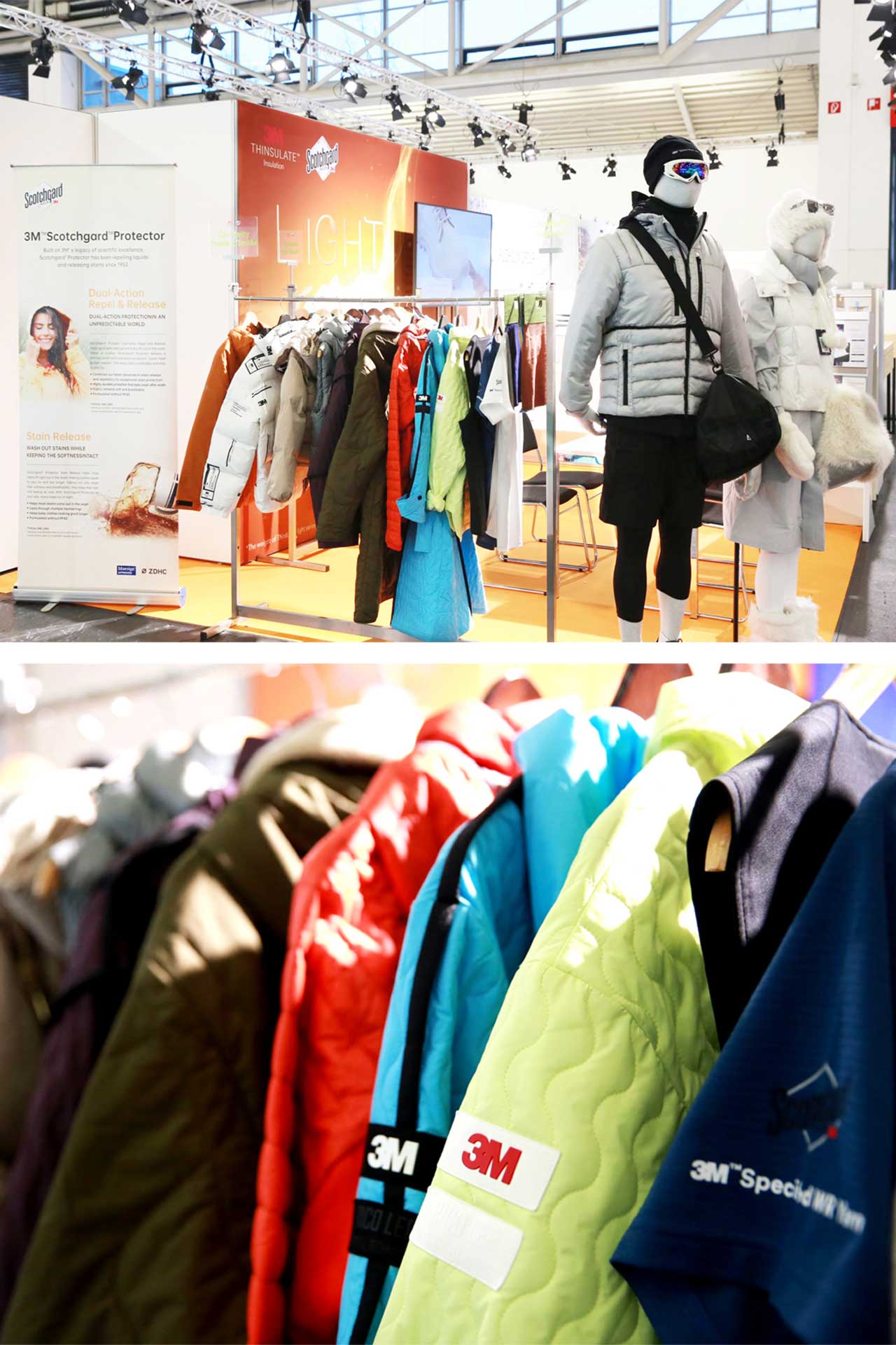 靜態(tài)展陳中,展示著來自3M™新雪麗™保暖材料與3M™思高潔™防護(hù)助劑的創(chuàng)新產(chǎn)品和解決方案,重新定義可持續(xù)時尚的科技環(huán)保新場景,讓觀眾近距離感知3M時尚科技的溫暖力量的同時,為業(yè)內(nèi)上下游的共同合作帶來更多啟發(fā)與可能。
