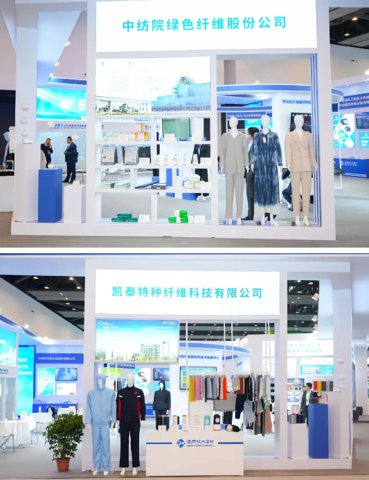 中紡院綠色纖維股份公司、凱泰特種纖維科技有限公司分別展示了綠纖®?系列萊賽爾纖維、紗線、非織造布、面料及終端產(chǎn)品,以及阻燃萊賽爾等差別化纖維;錦滌復(fù)合纖維、導(dǎo)電纖維、涼感纖維、低熔點纖維、丙綸纖維、高強錦滌復(fù)合纖維等。