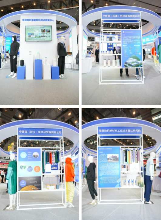 中紡院纖維新材料技術(shù)創(chuàng)新中心、中紡院(天津)科技發(fā)展有限公司、中紡院(浙江)技術(shù)研究院有限公司、海西紡織新材料工業(yè)技術(shù)晉江研究院聯(lián)合展示了萊賽爾短纖、長絲、非織造布及阻燃、抗菌等一系列萊賽爾產(chǎn)品,高性能聚乙烯纖維、繩纜及聚苯硫醚短纖維等高性能產(chǎn)品,原位聚合特黑聚酯系列產(chǎn)品,原液著色產(chǎn)品,醫(yī)用纖維產(chǎn)品,可降解聚酯切片,氣凝膠切片及纖維,海藻酸鹽纖維,光蓄熱稀土抗菌纖維,紅外反射中空聚酯纖維,植物染系列產(chǎn)品。