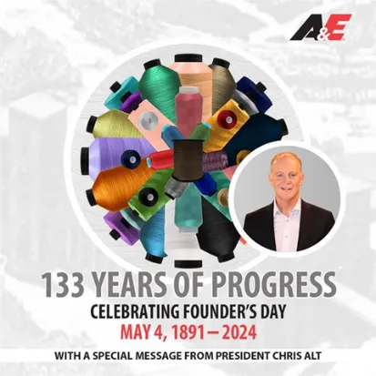 慶祝A&E在133年來(lái)一直提供優(yōu)質(zhì)的縫紉線產(chǎn)品、卓越的服務(wù)和持續(xù)的進(jìn)步!