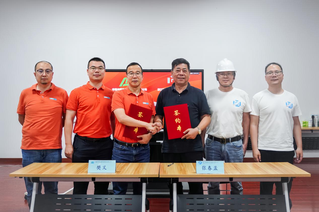 美源新材董事長張春孟(右三),華恒生物董事、副總裁樊義(左三),代表雙方共同簽署戰(zhàn)略合作協(xié)議