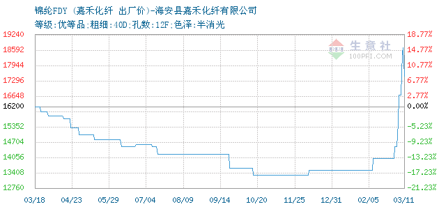 12月15日嘉禾化纖關(guān)于錦綸FDY的報價為13500元/噸。錦綸FDY的規(guī)格:等級:優(yōu)等品;粗細(xì):40D;孔數(shù):12F;色澤:半消光。該報價有效期為3天。報價提供方:海安縣嘉禾化纖有限公司。