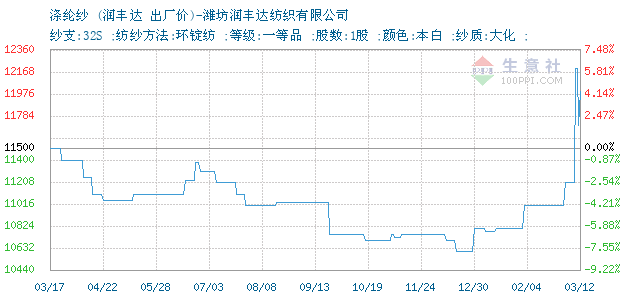 12月15日濰坊潤豐達(dá)紡織有限公司關(guān)于32S滌綸紗的報價為10700元/噸。32S滌綸紗的規(guī)格:紗支:32S ;紡紗方法:環(huán)錠紡 ;等級:一等品 ;股數(shù):1股 ;顏色:本白 ;紗質(zhì):大化 ;。該報價有效期為3天。報價提供方:濰坊潤豐達(dá)紡織有限公司。