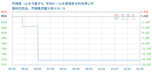 12月16日山東齊魯石化丙烯腈為7200元