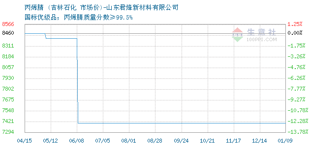 12月16日吉林石化丙烯腈為7400元