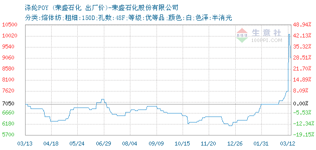 12月16日榮盛石化關(guān)于滌綸POY的報(bào)價(jià)為6200元/噸。滌綸POY的規(guī)格:分類(lèi):熔體紡;粗細(xì):150D;孔數(shù):48F;等級(jí):優(yōu)等品;顏色:白;色澤:半消光。該報(bào)價(jià)有效期為7天。報(bào)價(jià)提供方:榮盛石化股份有限公司。