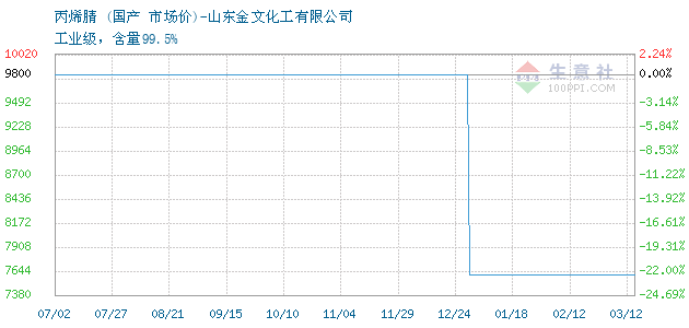 12月17日國產(chǎn)丙烯腈為9800元
