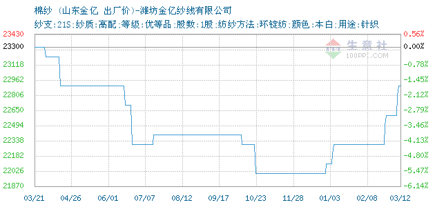 12月17日山東金億棉紗21S為22000元