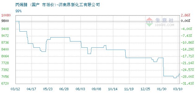12月18日國(guó)產(chǎn)關(guān)于丙烯腈的報(bào)價(jià)為8000元/噸。丙烯腈的規(guī)格:99%。該報(bào)價(jià)有效期為3天。報(bào)價(jià)提供方:濟(jì)南昂新化工有限公司。