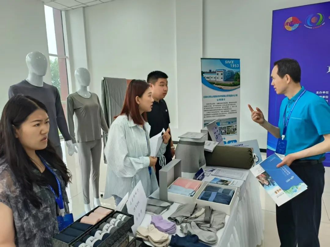 常山恒盛紡織、得利達(dá)紡織、騰利制衣、金怡化纖、豐泰永晟、春衫服飾(佳綺利圍裙)、藍(lán)天縫制設(shè)備等河北省代表品牌企業(yè)進(jìn)行現(xiàn)場推介,集中展現(xiàn)企業(yè)主營業(yè)務(wù)和產(chǎn)品亮點(diǎn),進(jìn)一步增進(jìn)供需雙方了解,為京津冀三地企業(yè)增進(jìn)業(yè)務(wù)合作、強(qiáng)化區(qū)域內(nèi)循環(huán)創(chuàng)造直接機(jī)遇。各級領(lǐng)導(dǎo)及企業(yè)代表光臨了石家莊市現(xiàn)場推介展位。